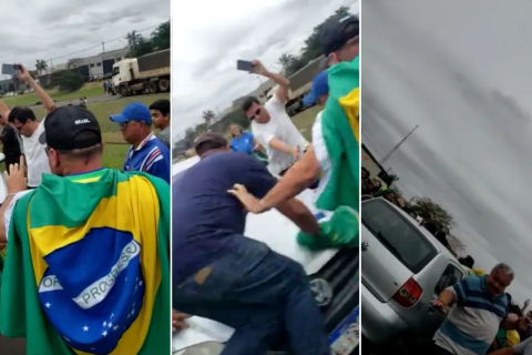 Logo após o atropelamento, os bolsonaristas tentaram agredir o motorista que atropelou o grupo, mas foram impedidos por equipes da corporação. Muitas pessoas cercaram e danificaram o veículo.